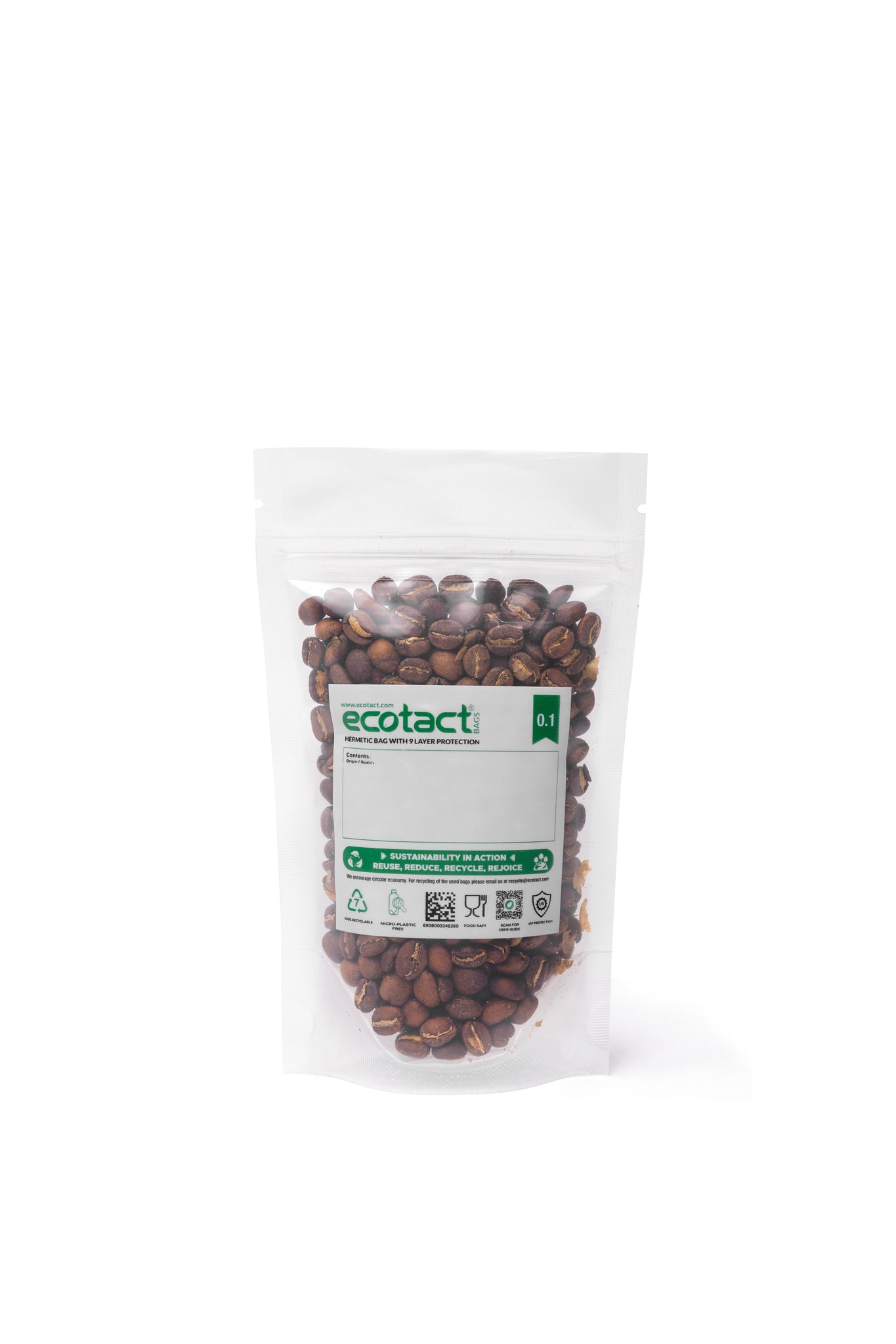 その中でも、小袋サイズで展開しているものが、エコタクト0.1(参考サイズ:コーヒー生豆100g)~エコタクト5.0(参考サイズ:コーヒー生豆5㎏)のサイズ展開です。